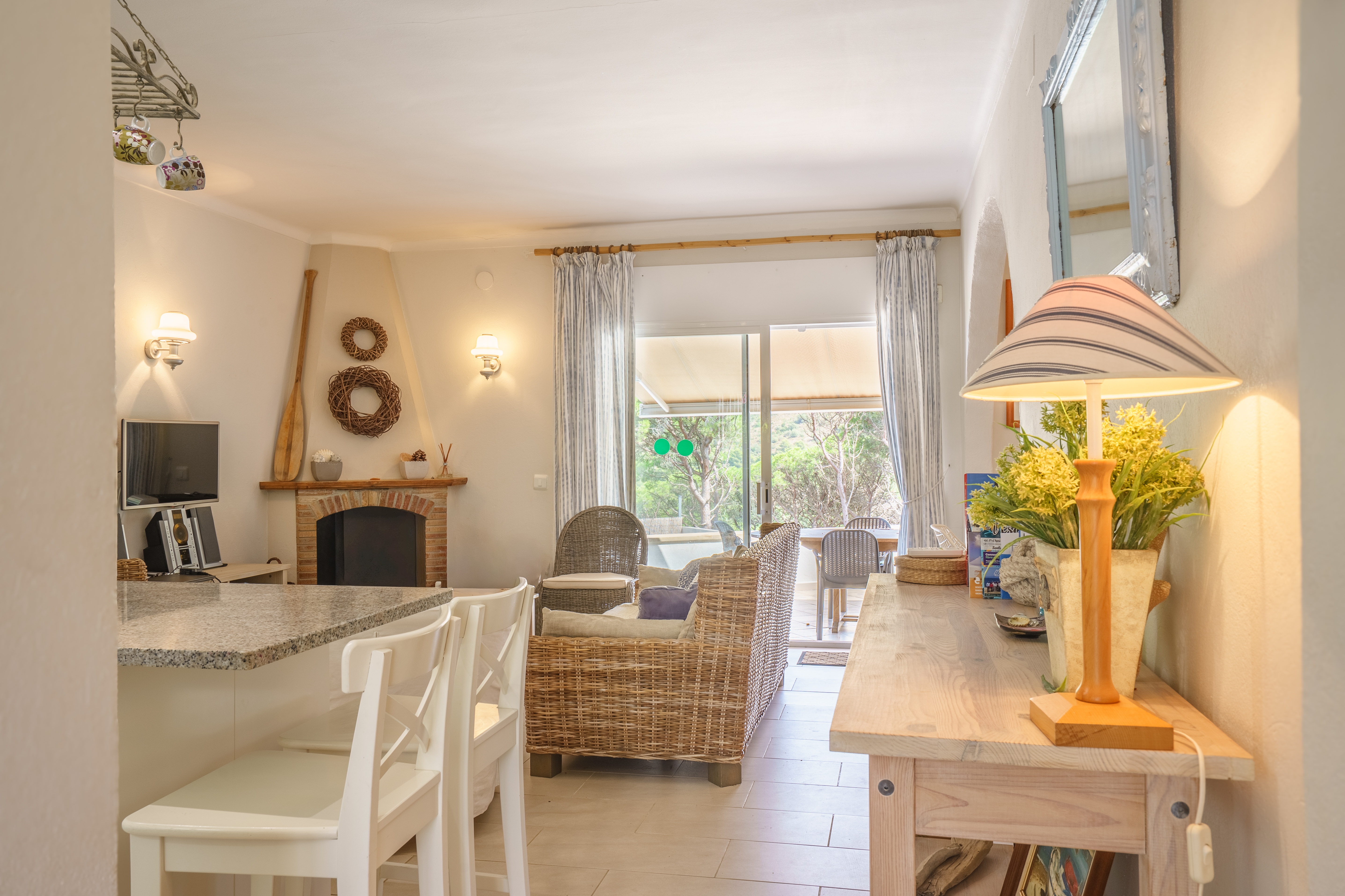 The living room has a flat-screen TV with satellite reception and there is a stereo to listen to music. A stone barbecue is found in one of the terraces on the back of the house. Enjoy a nice meal at the dining table in the garden or on the terrace. In the evening, the lights of the Montgó district shine through the trees.